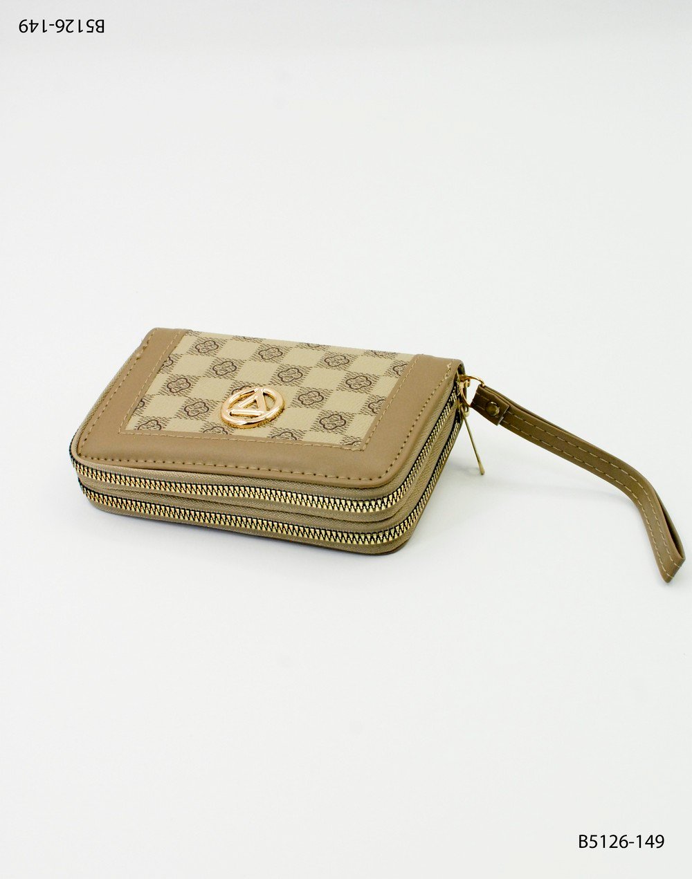 Billetera con diseño damero y emblema dorado B5126