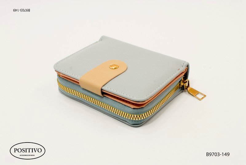 Billetera corta con broche y cierre con celeste B9703