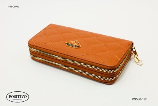 Billetera larga capitoneada doble cierre naranja B9680
