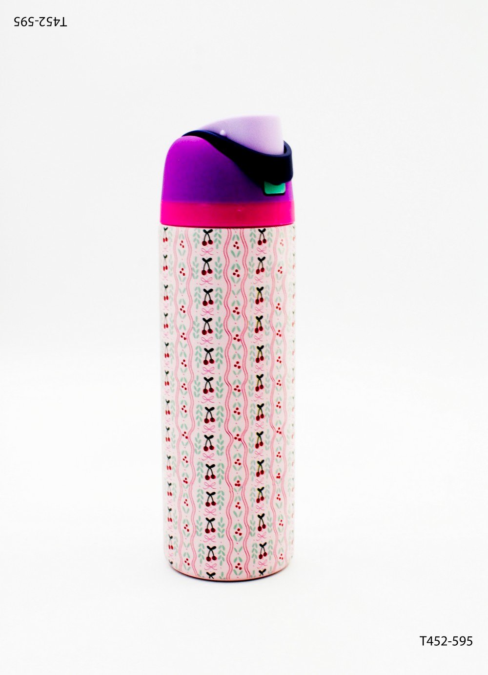Botella térmica con patrón repetitivo de siluetas y tapa abatible T452