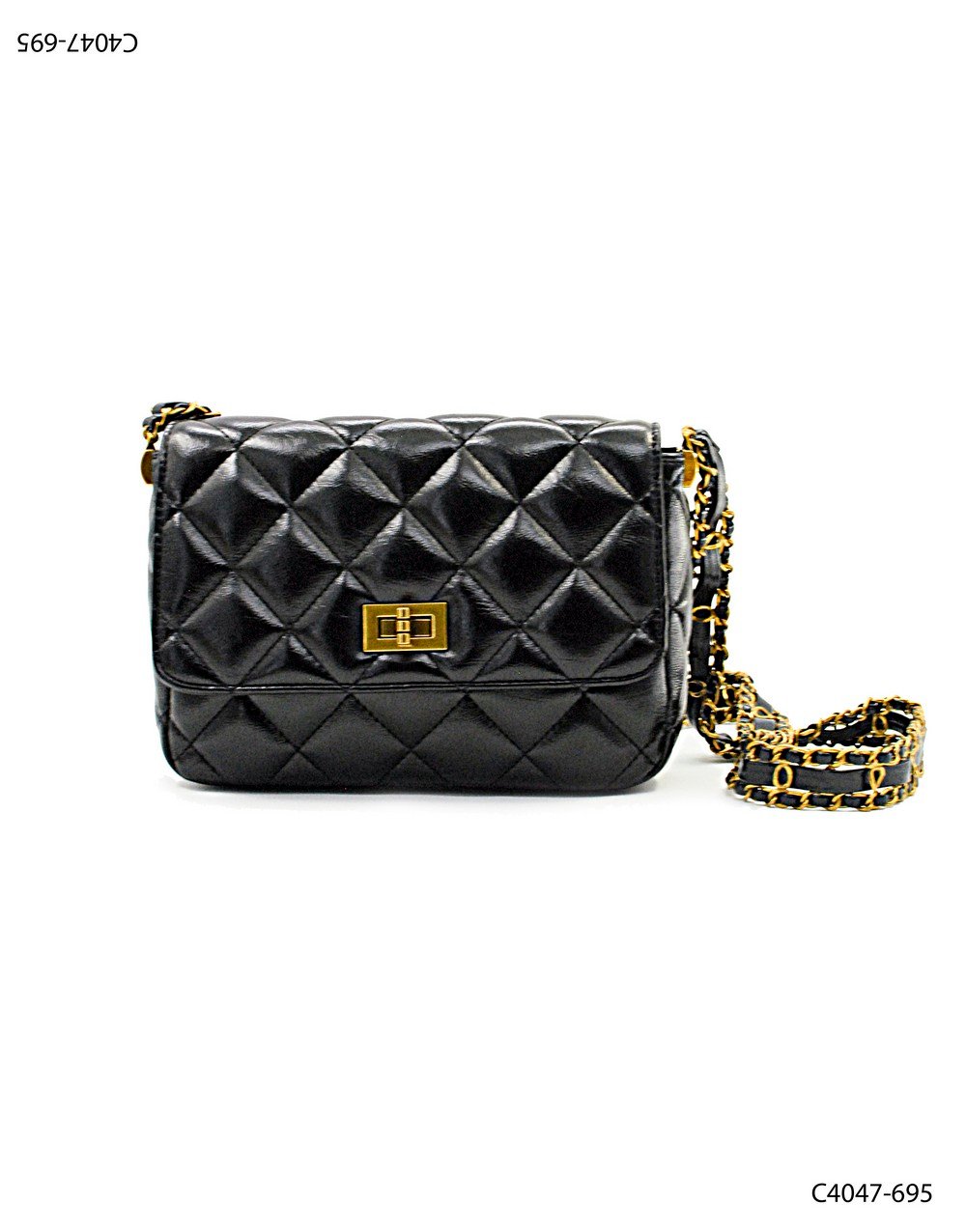 Cartera acolchada con cadena dorada y cierre giratorio C4047