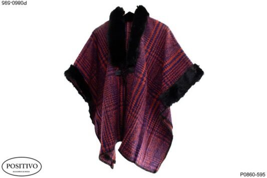 $1,295.00Ruana escoces con bordes en piel P1213