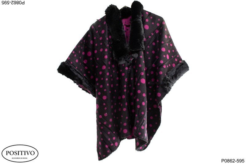 Ruana con piel en el cuello y mangas P0864