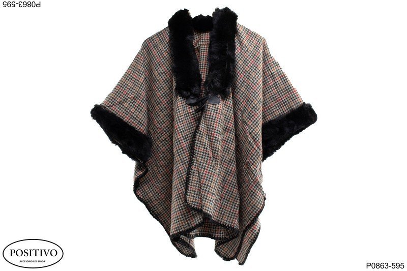$595.00Ruana con piel en el cuello y mangas P0866